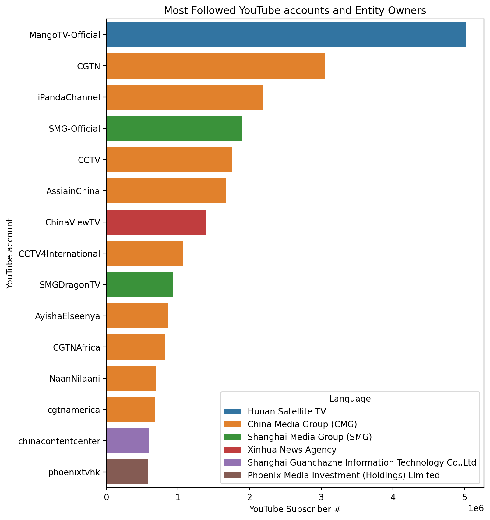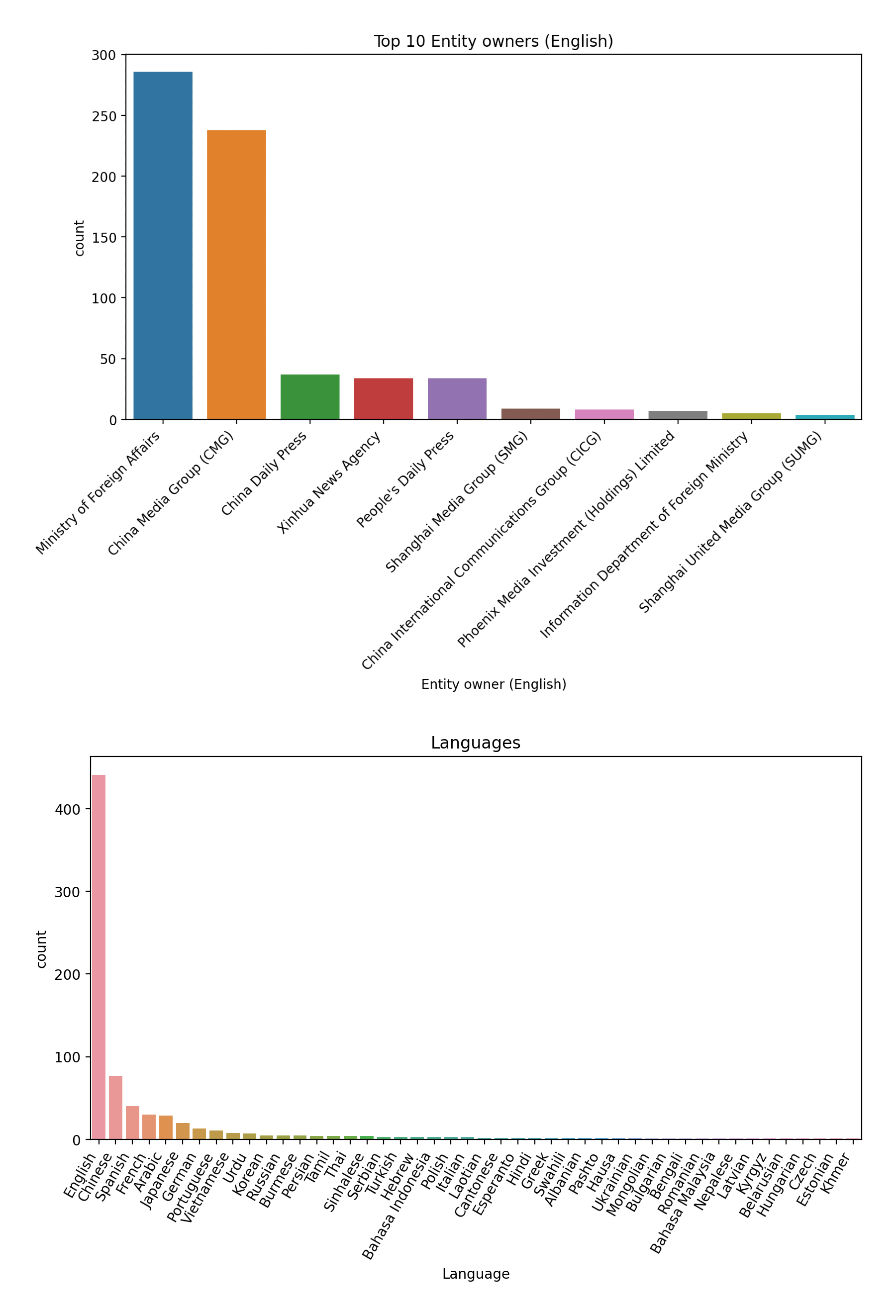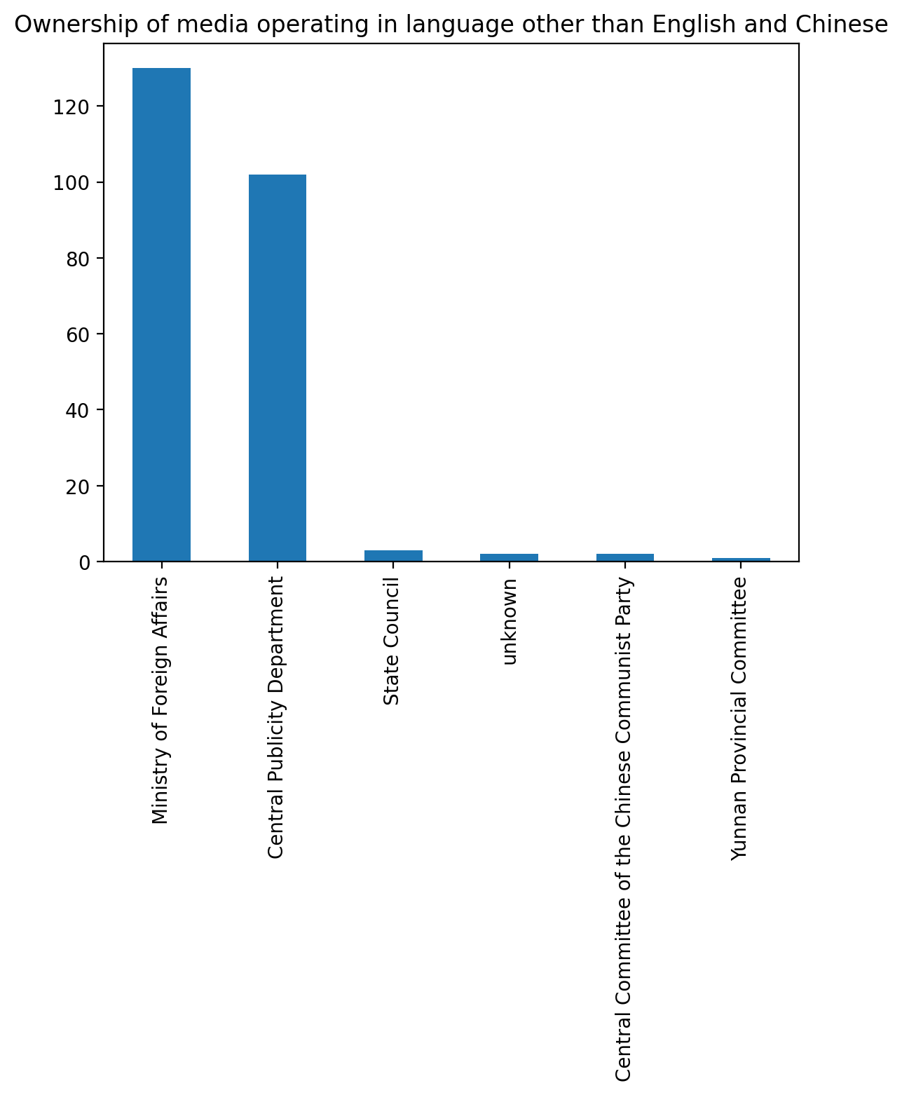 Ministry of Foreign Affairs owns 286 of these entities , followed by China Media Group owning 238.
