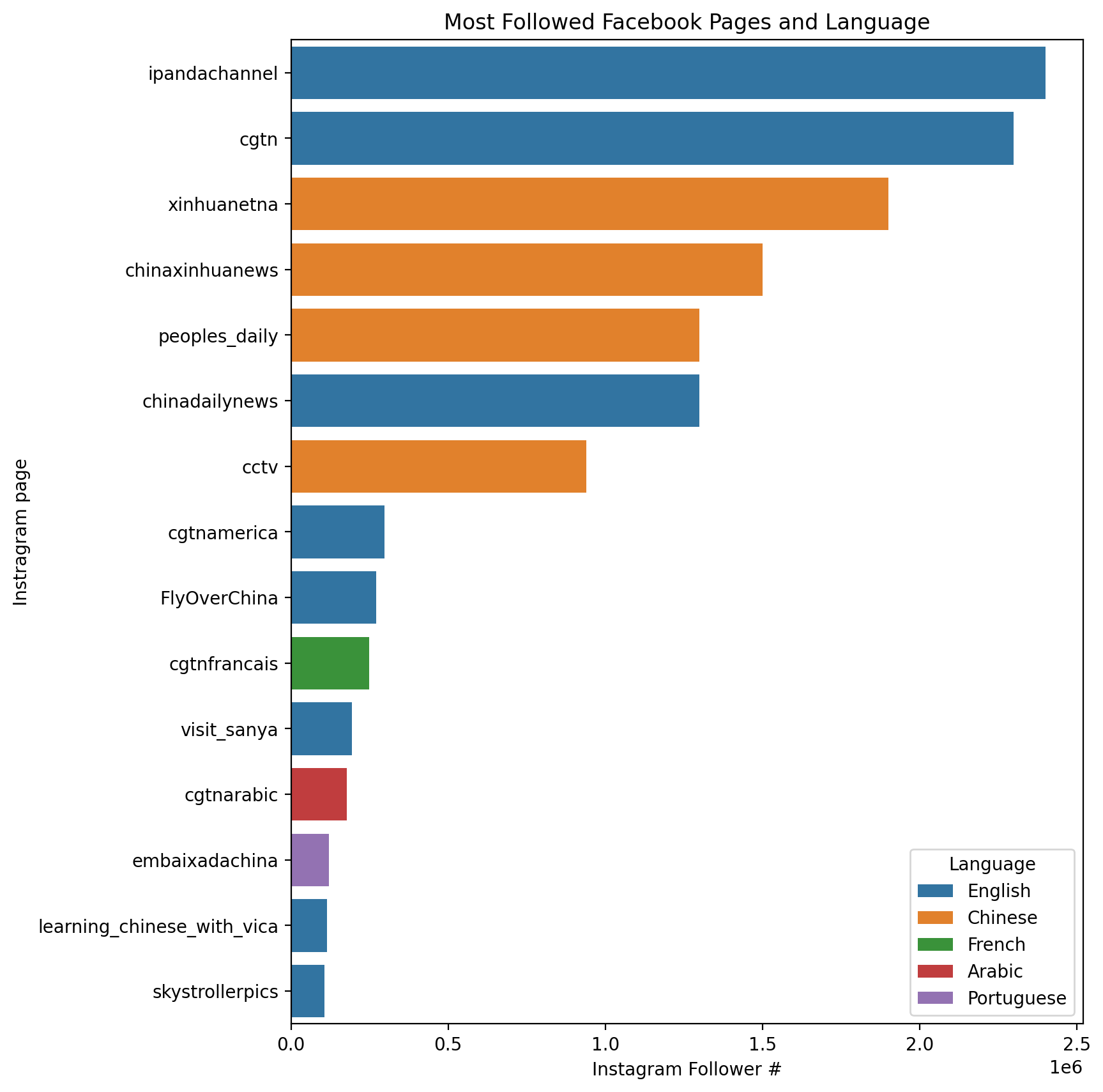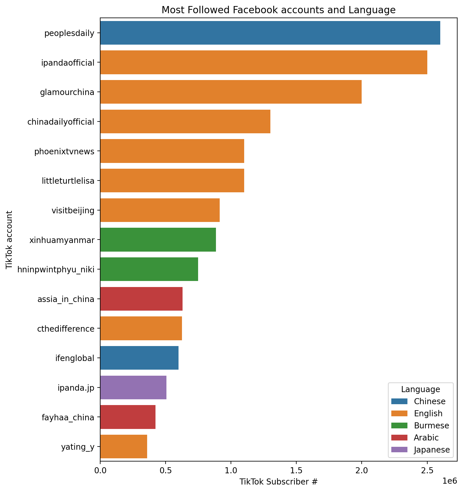 English is the most used language (Used by 441 handles), followed by Chinese (Used by 77 handles) .